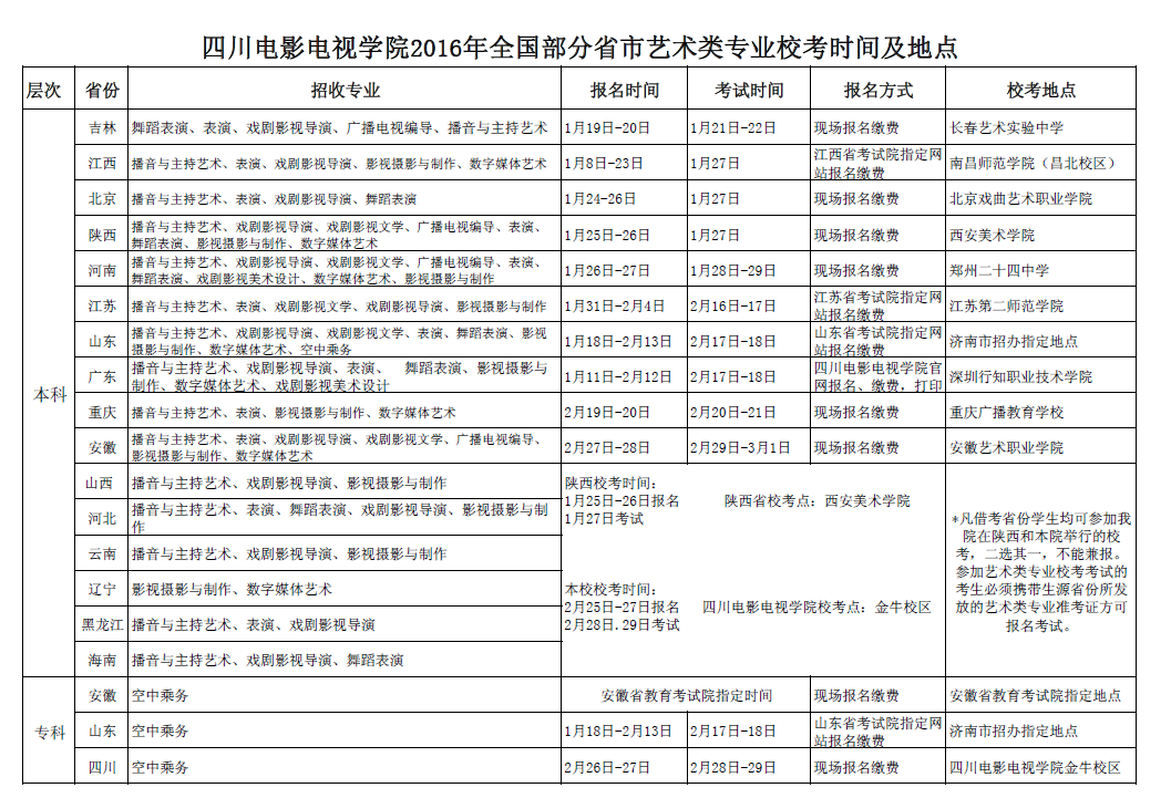五、万象城平台2016年艺术专业报名考试时间及地点