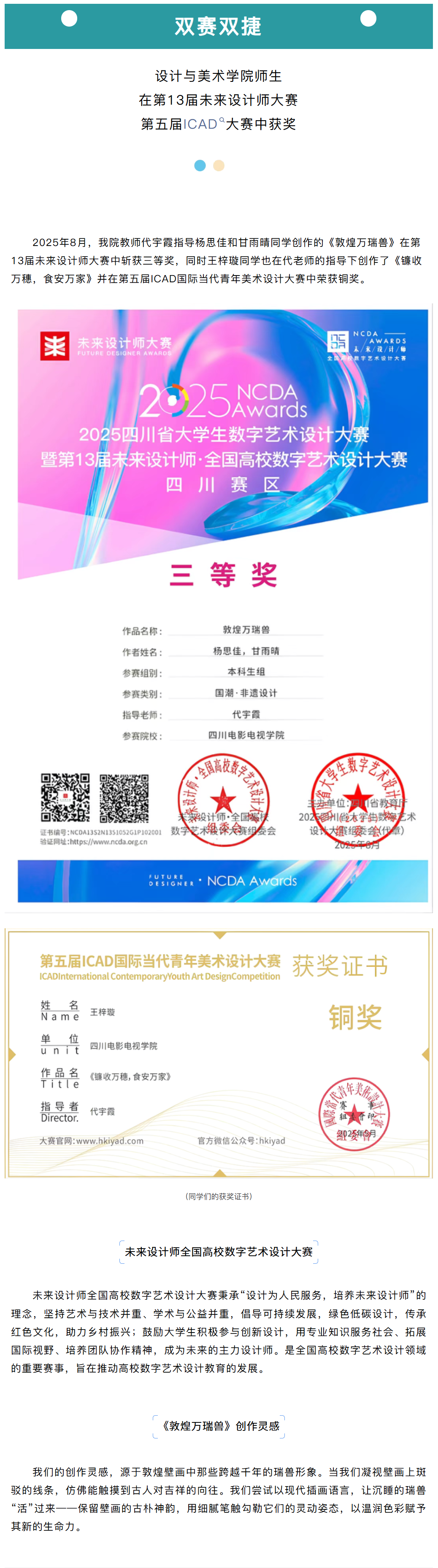 双赛双捷▍设美学子揽获未来设计师三等奖、ICAD铜奖
