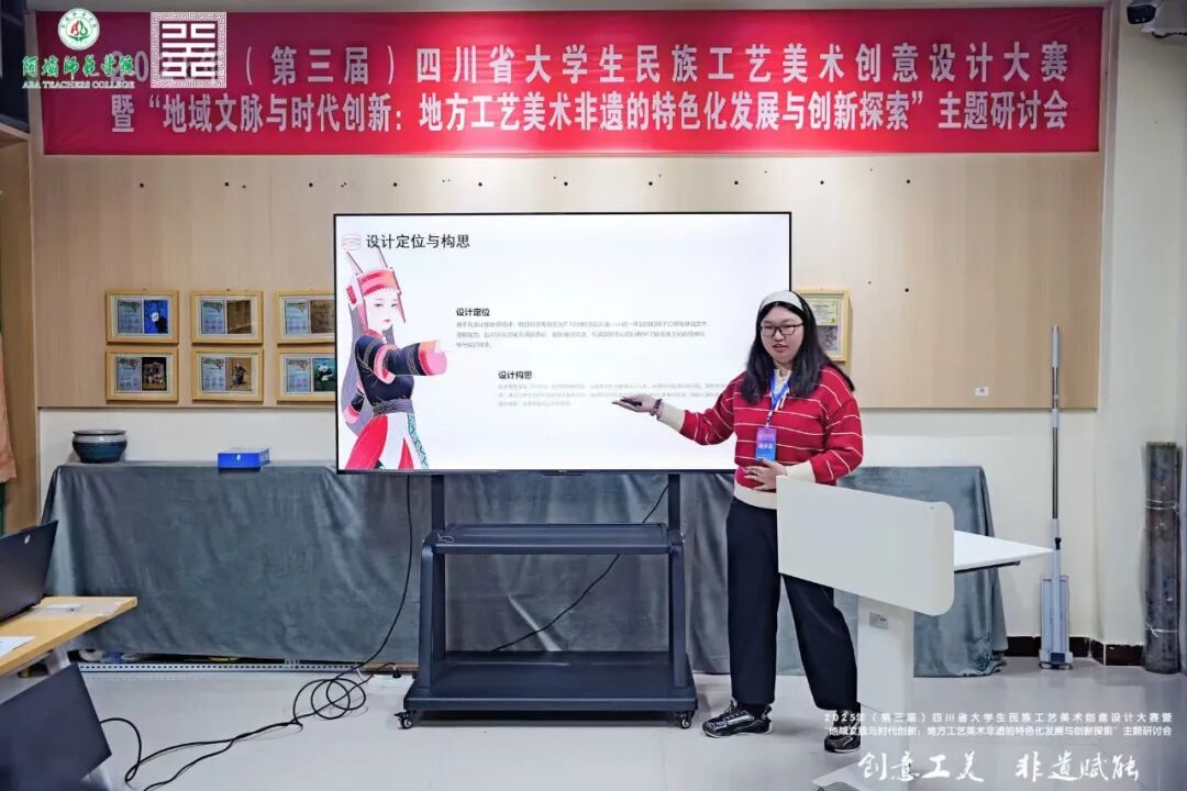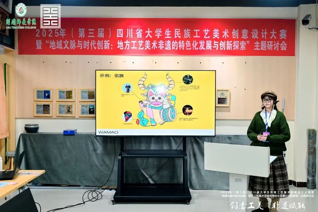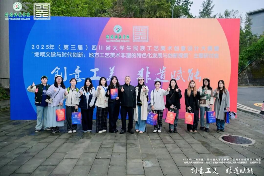 2025 年 10 月 19 日,由四川省教育厅主办、阿坝师范学院与阿坝州文化馆(阿坝州非遗中心)联合承办的“2025 四川省大学生民族工艺美术创意设计大赛”,在阿坝师范学院水墨桃 园 大 剧 场 圆 满 落 幕 。 设 计 与 美 术 学 院 执 行 院 长 李 靖 带 队 参 加 现 场 决 赛 。