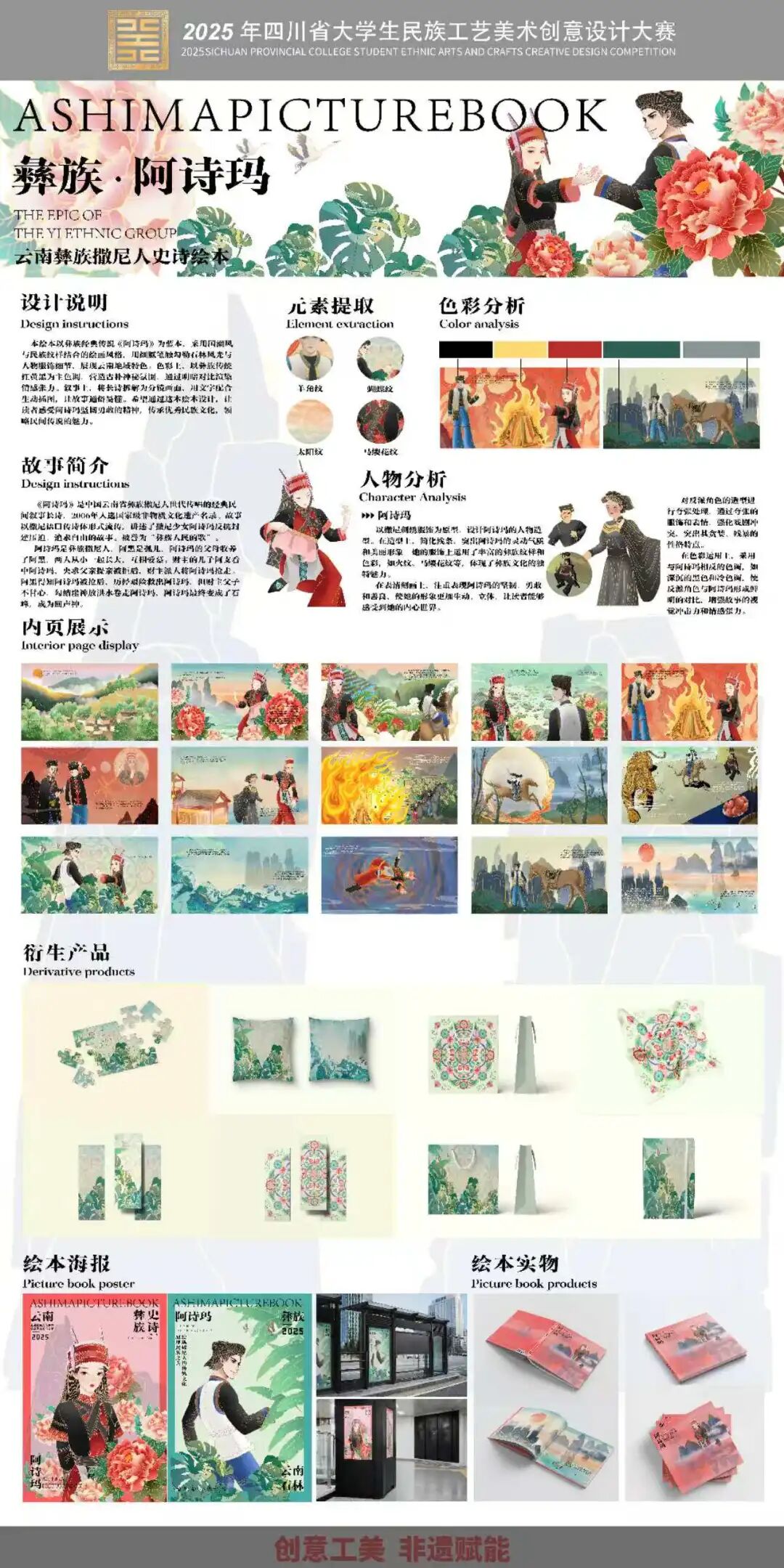 一等奖实物设计作品《彝族史诗阿诗玛绘本设计》