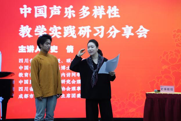 分享会现场气氛热烈,座无虚席。史倩教授结合自身多年的教学经验与艺术实践,围绕中国声乐作品的风格把握、演唱技法、情感表达以及教学中的重点难点等问题进行了深入浅出的讲解。她指出,中国声乐艺术博大精深,涵盖了民歌、古诗词歌曲、民族歌剧等多种体裁,具有极其丰富的多样性。在教学与实践中,必须充分尊重并研究这种多样性,引导学生掌握不同风格作品的演唱精髓。