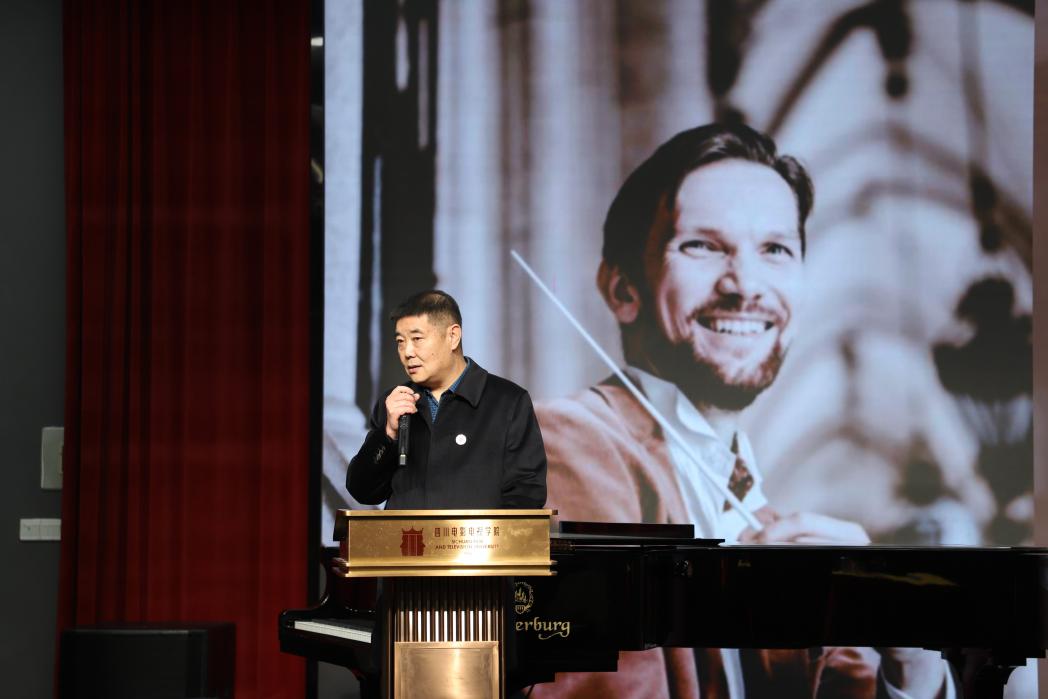11月5日,一场高水准的音乐盛宴在我院精彩上演——奥地利指挥家、室内乐演奏家 Alexander Znamenskiy 大师课在万象城平台音乐学院成功举办。万象城平台校长罗思教授亲临现场,对Alexander Znamenskiy的到来表示热烈欢迎,并亲切慰问我院师生,对音乐学院师生在各类赛事中取得的优异成绩给予了充分肯定,与全体师生一同开启了这场艺术交流之旅。随后,音乐学院院长李兵教授上台致辞,代表学院向远道而来的艺术家表达诚挚欢迎,并对本次大师课寄予厚望,希望同学们能够在国际大师的艺术视角与专业指引中汲取经验、拓展思维,进一步提升艺术表达与舞台表现能力。